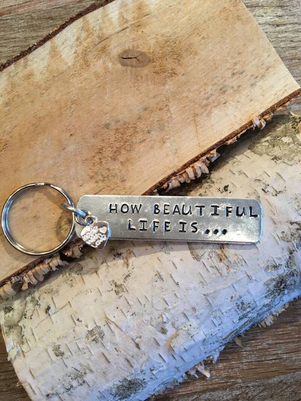 De tekst word met de hand geslagen daarom staan de letters niet altijd perfect recht. Dat maakt ieder item uniek.